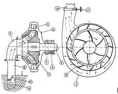 Santrifüj pompalar temelde dört parçadan meydana gelmektedir. Bu parçalar başlıca; çark, salyangoz, difüzör ve salmastra kutusudur. Bu parçaların görevleri ise kısaca şunlardır: