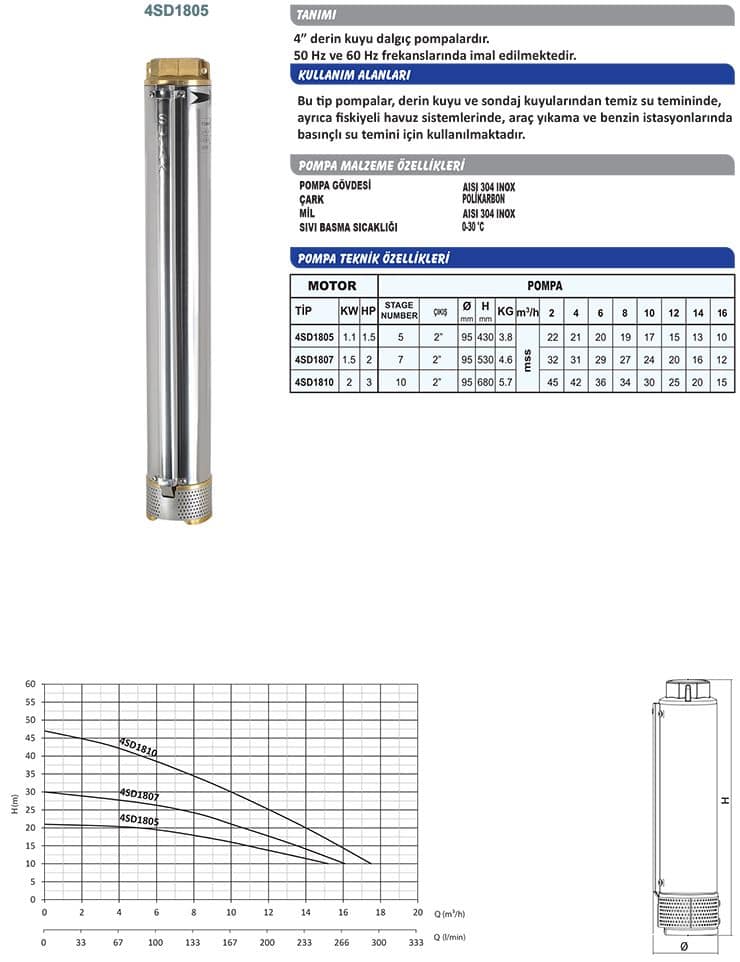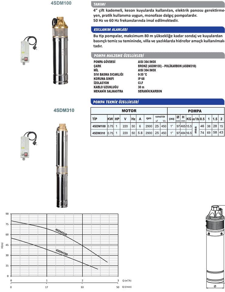 Tamamen akışkan içerisinde çalıştıklarından, gürültü ve titreşime neden olmazlar, konforlu bir iletişim sağlarlar. Ayrıca pompa ve motorun kullanıcı tarafından müdahale edilemeyecek şartlarda bulunması nedeniyle, hatalardan kaynaklanabilecek arızalar oldukça azdır.